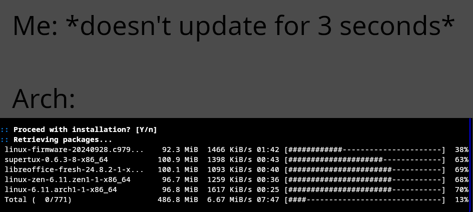 arrow-up1119imageto be fair i actually didn't update for a few monthsplus-squarelemmy.mlSaltyIceteaMaker@lemmy.ml to linuxmemes@lemmy.world · 4 hours agomessage-square23fedilink