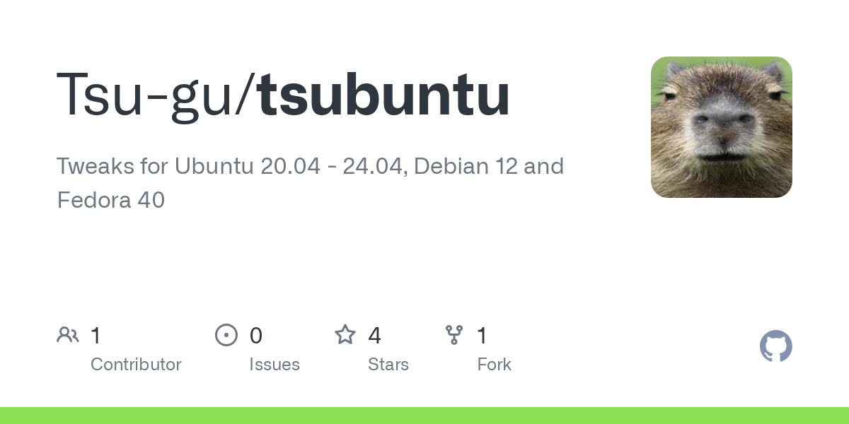 tsugu@slrpnk.net to Linux@lemmy.mlEnglish · edit-24 hours agoI made a script that configures Ubuntu (mainly its GNOME) the way I like it. I also made it work in Debian and Fedora.plus-squaregithub.comexternal-linkmessage-square12fedilinkarrow-up164