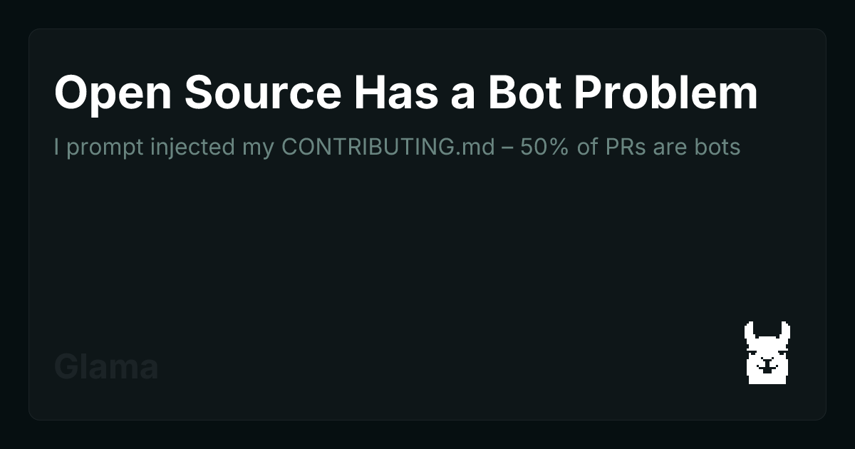 arrow-up1416external-linkI prompt injected my CONTRIBUTING.md – 50% of PRs are botsplus-squareglama.aivegetaaaaaaa@lemmy.world to Selfhosted@lemmy.worldEnglish · 22 hours agomessage-square56fedilink