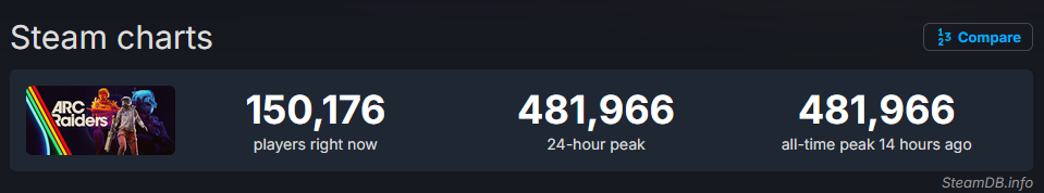 inlandempire@jlai.luEnglish · 1 month agoTwo weeks after release, Arc Raiders hit a new all time peak on Steam!jlai.luimagemessage-square0fedilinkarrow-up11