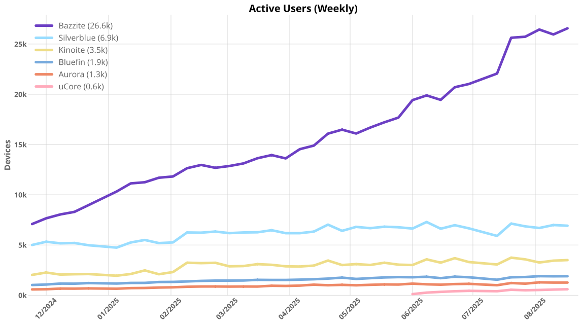 arrow-up11imageBazzite has gained nearly 10k users in 3 months while other Fedora Atomic distros remain fairly stagnantplus-squarelemmy.mlbesmtt@lemmy.worldEnglish · 3 months agomessage-square0fedilink
