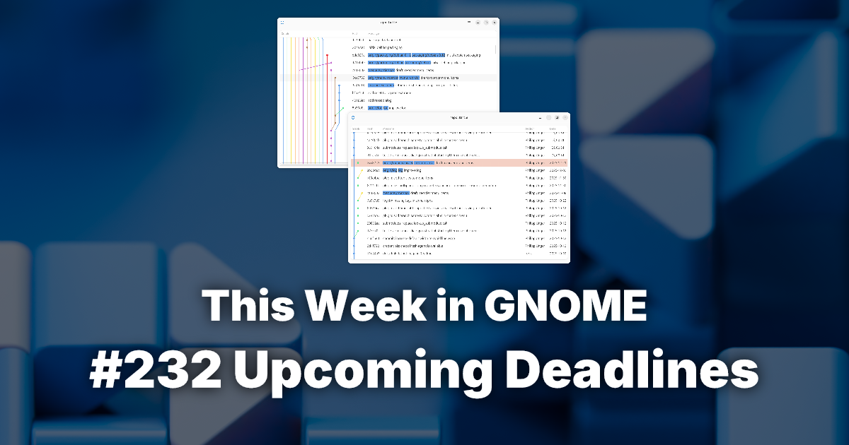 petsoi@discuss.tchncs.deMEnglish · 5 days agoThis Week in Gnome #232 Upcoming Deadlinesplus-squarethisweek.gnome.orgexternal-linkmessage-square0fedilinkarrow-up11