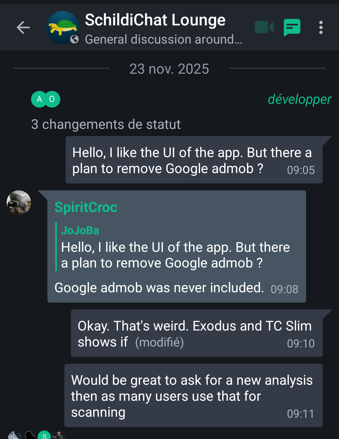 harfang@slrpnk.net · 16 hours agoSchildiChat got Trackers ?plus-squarelemmy.mlimagemessage-square9fedilinkarrow-up142