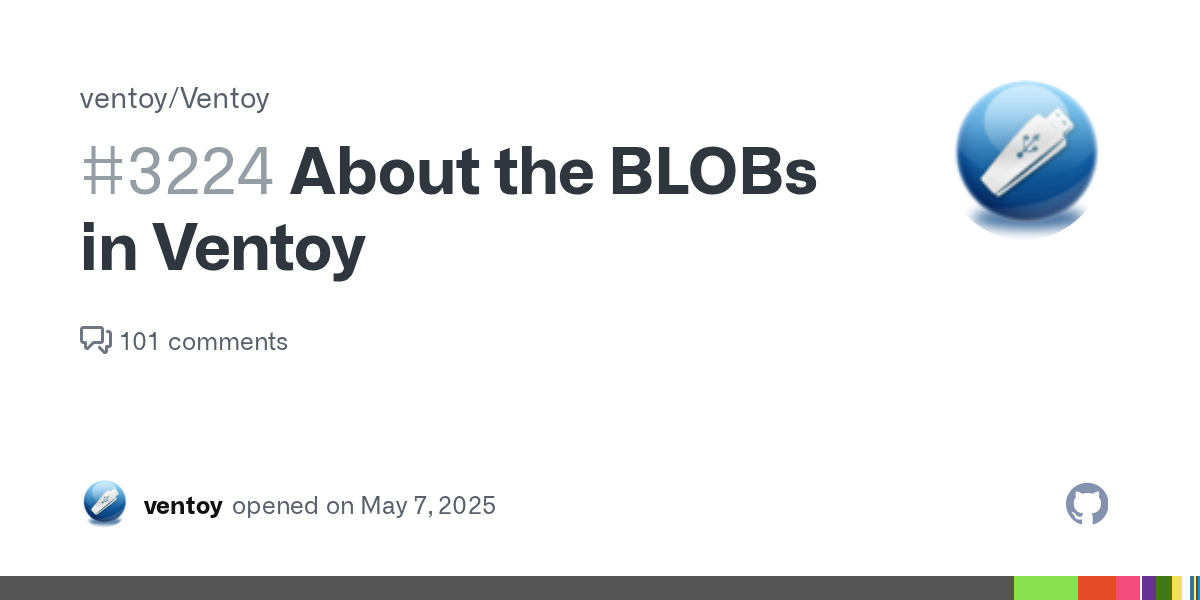 Der_Fossyler@feddit.orgEnglish · 10 months agoUpdate: About the BLOBs in Ventoy · Issue #3224plus-squaregithub.comexternal-linkmessage-square0fedilinkarrow-up111