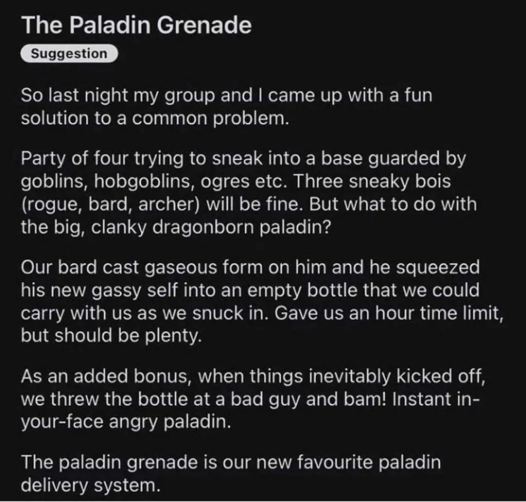 Stamets@lemmy.dbzer0.com · 1 day agoThe Paladin Grenadelemmy.dbzer0.comimagemessage-square13fedilinkarrow-up1399