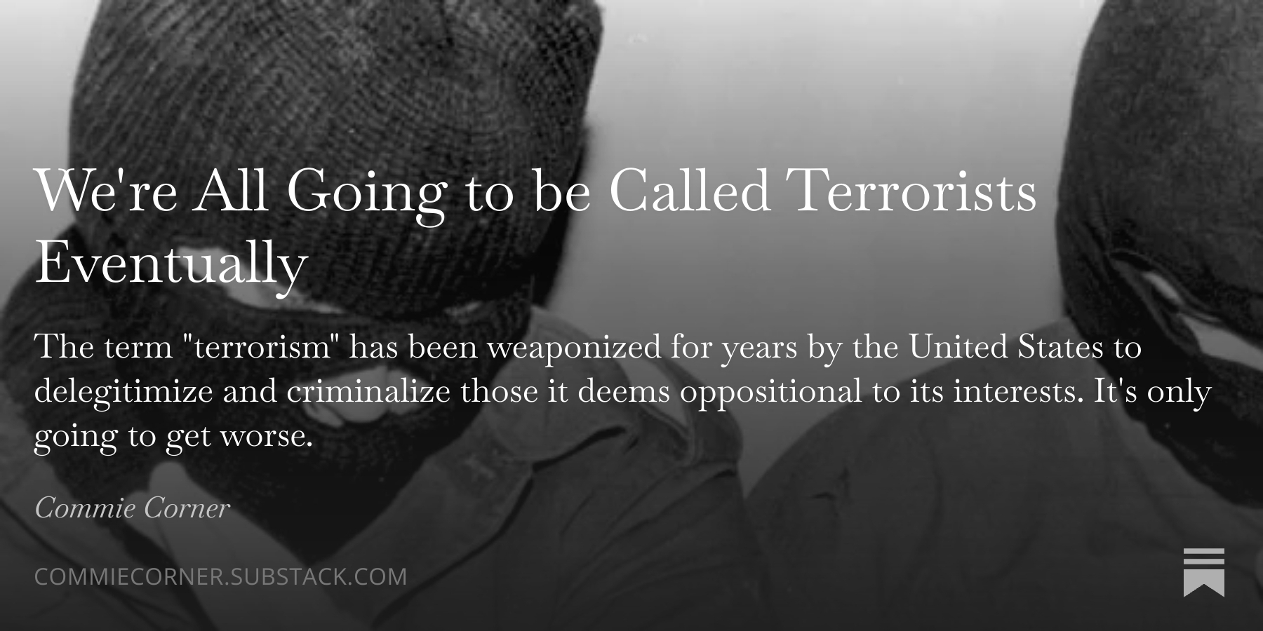arrow-up147external-linkWe're All Going To Be Called Terrorists Eventuallyplus-squareopen.substack.comdogbert@lemmy.zip · 4 days agomessage-square0fedilink