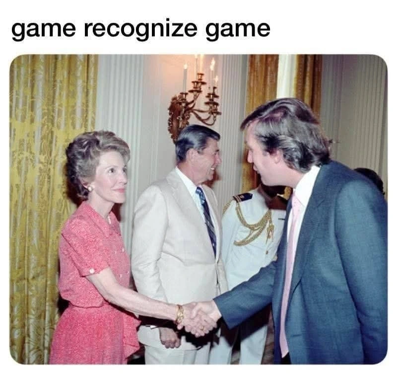 I’m guessing this picture was chosen for the “Game recognize Game” meme more because it’s easier to find than a photo of Trump with Monica.