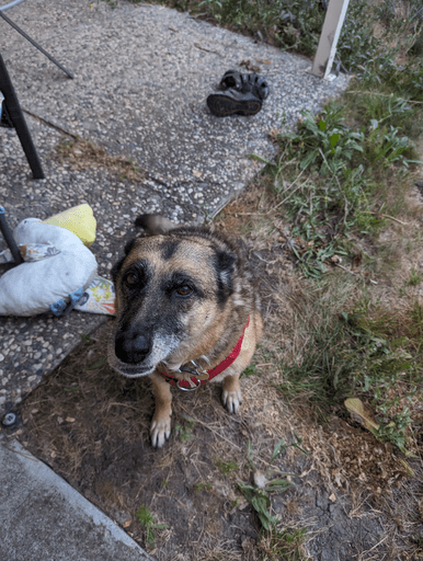 Couldn’t find a species-appropriate community for this one but, she’s afraid of cats, so, it might be OK. This is Freya. She’s a 12 year-old rescue pup.
