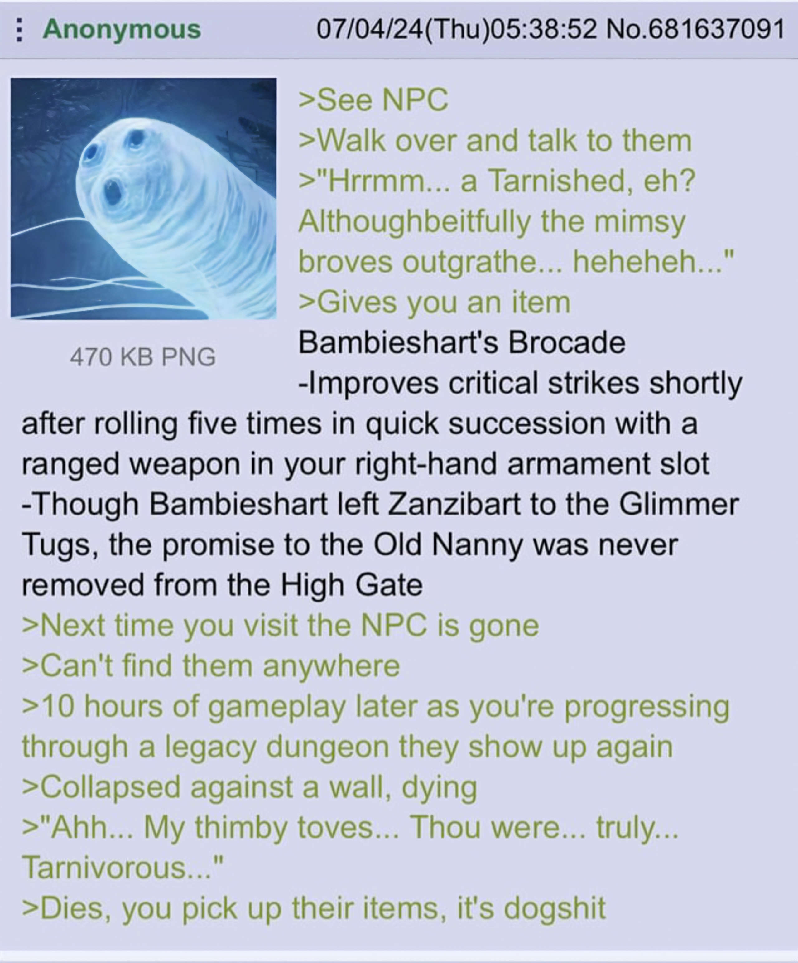 arrow-up1382imageAnon didn't like the lootsh.itjust.worksJohnWorks@sh.itjust.works to Greentext@sh.itjust.works · 3 days agomessage-square45fedilink