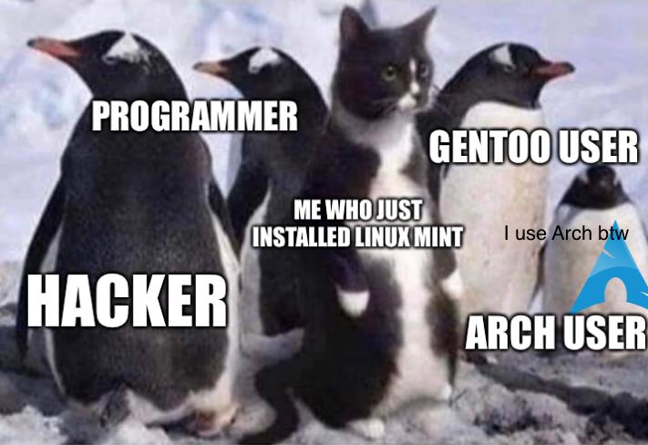 Tbh as an Arch (btw) user I’m not really some magic computer wizard, I struggle with basic python, I often forget command arguments (I take heavy advantage of fish but sometimes it doesn’t know the arguments either), I don’t know how to do much scripting, I don’t make my own config files, and my de is cosmic. Remember that most advanced Linux users are less advanced than people think (occasionally less advanced than even they think).