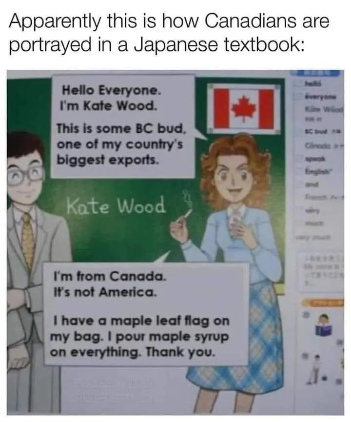 We don’t put maple leaves on our stuff anymore because when we travel we end up getting confused with Americans trying to pretend they’re not Americans by putting maple leaves on their shit.