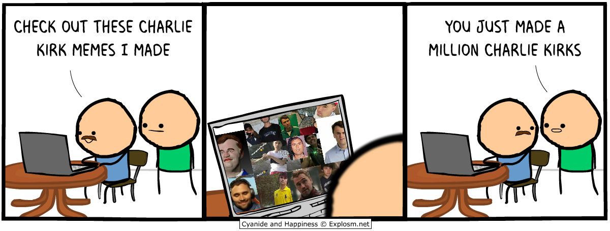 I feel like “a million Charlie Kirks” is supposed to be a pun or rhyme with something but I can’t see it.