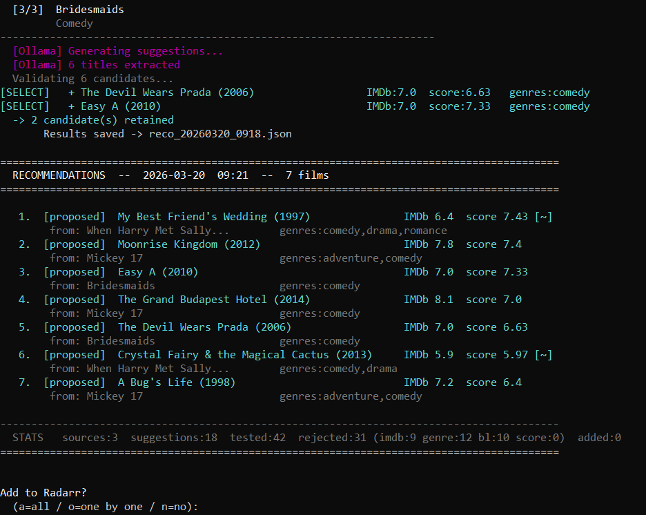 I Built a Python script that uses a local Ollama LLM to automatically find and add movies to Radarr.