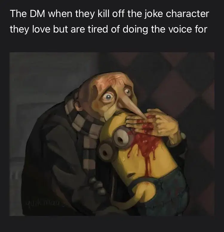Dazharion@lemmy.dbzer0.com to RPGMemes @ttrpg.network · 1 day agoI'm sorry Boblinlemmy.dbzer0.comimagemessage-square9fedilinkarrow-up1358
