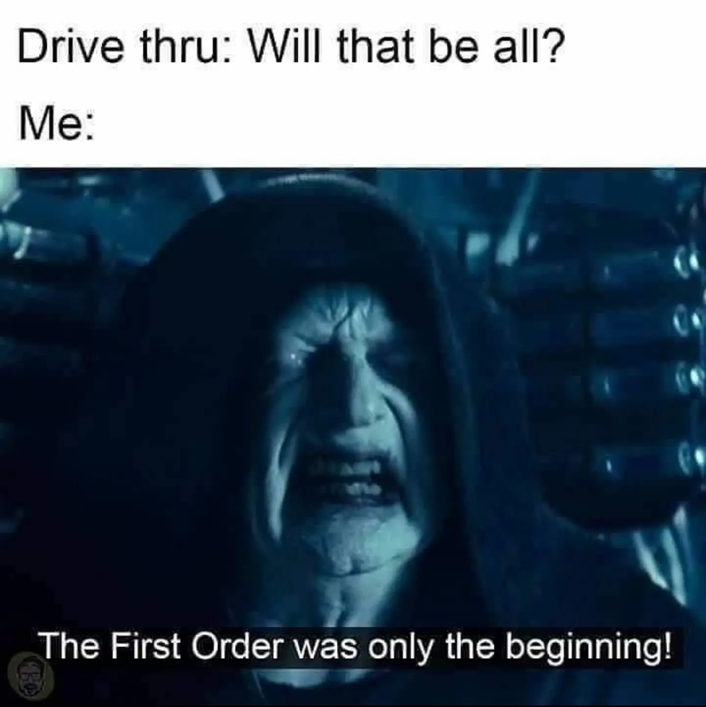 ORDER 66 BURGERS! 66 FRIES!! 66 MILKSHAKES!! 66 TACOS!! 66 WATERS!! 66 CHICKENS!!