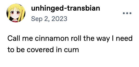 Do … do cinnamon rolls need to be covered in cum now? When did that come in? Is this a JFK Jr thing?