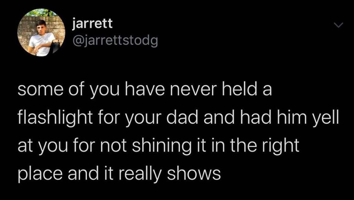 Holding the flashlight for your parents is one of the hardest things to do.