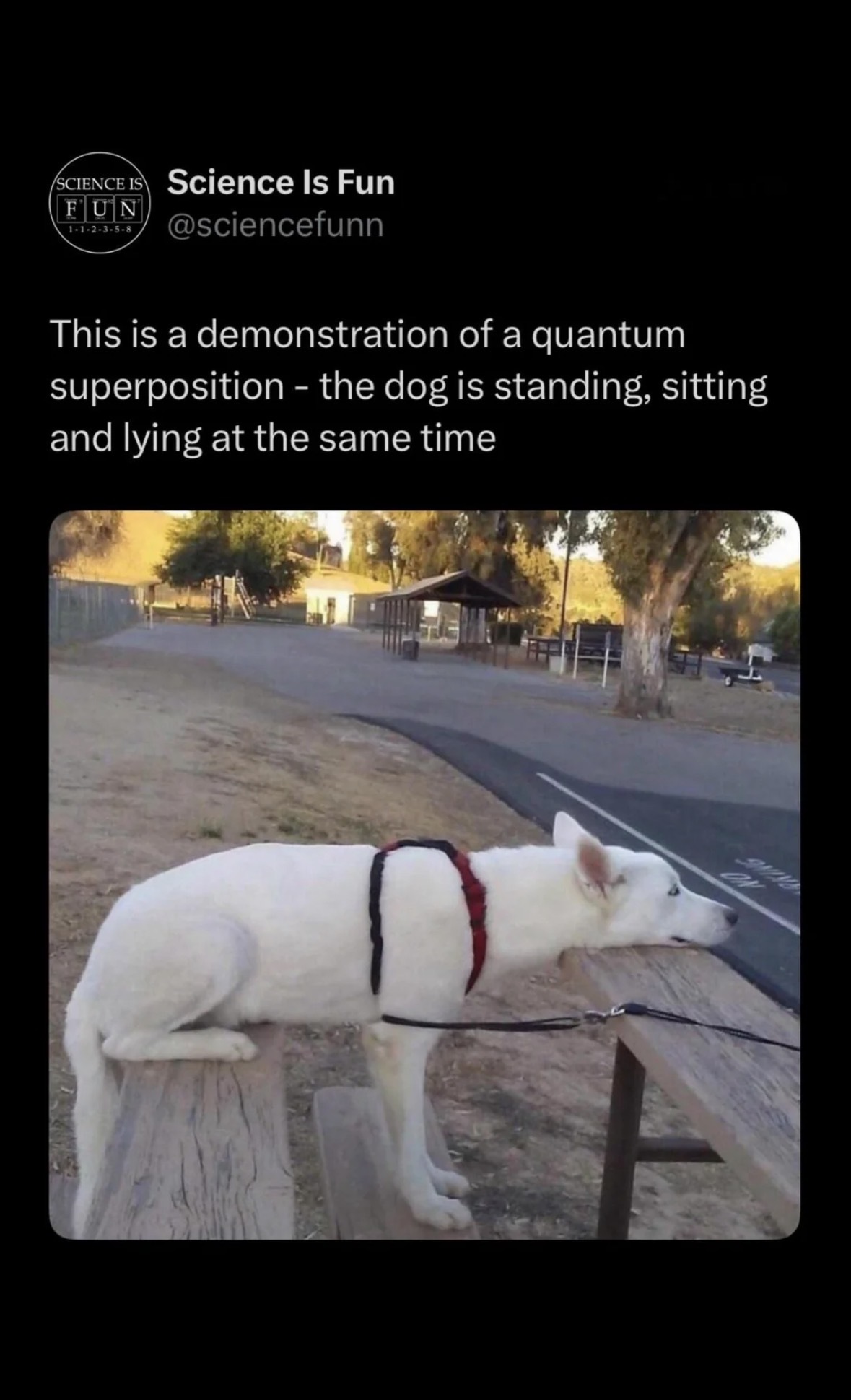 Schrödinger’s cat has nothing on this dog. Time to update the textbooks.