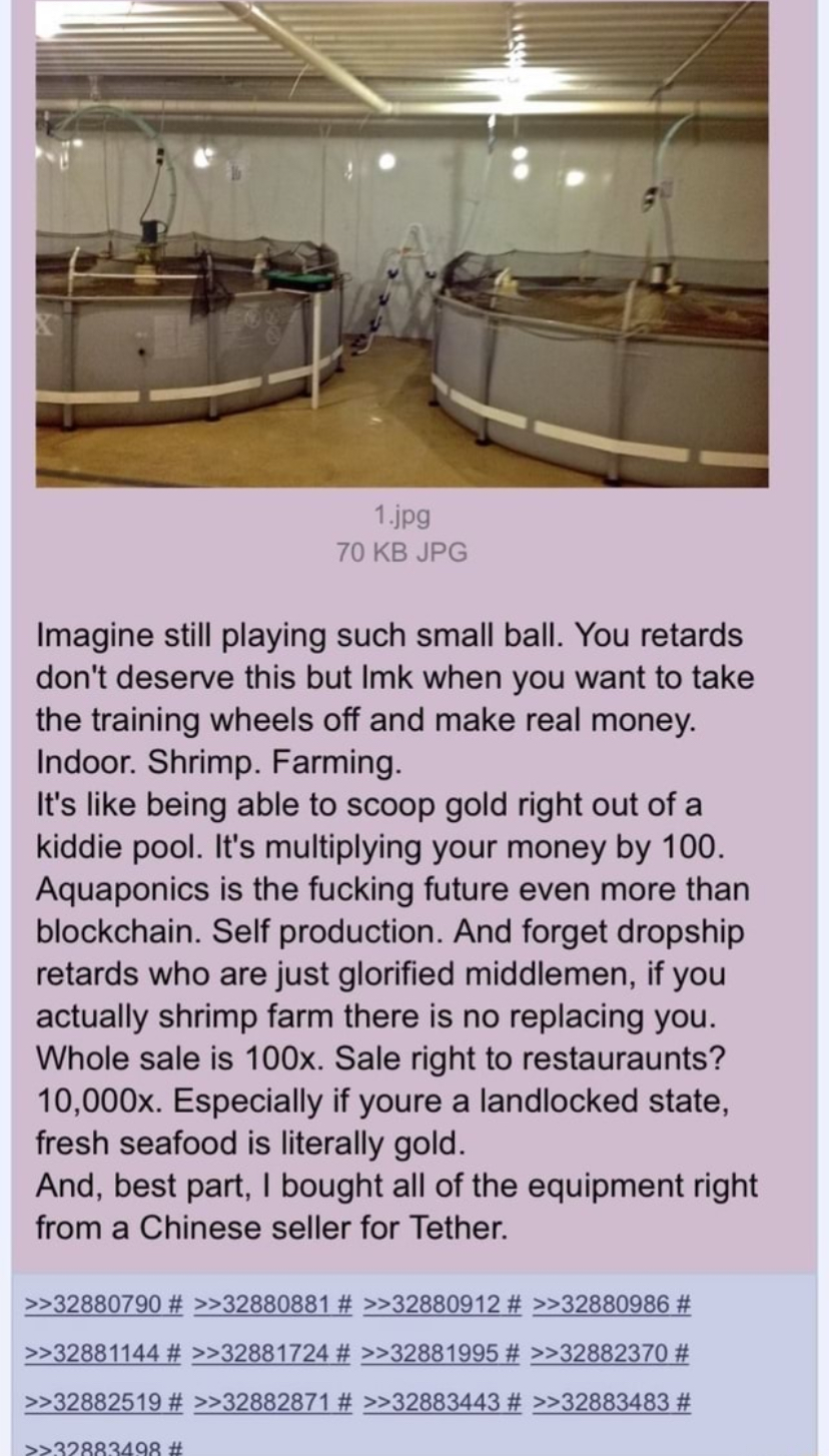 gurty@lemmy.world to Greentext@sh.itjust.works · 8 days agoAnon Promotes Shrimp Farmingi.imgur.comimagemessage-square44fedilinkarrow-up1422