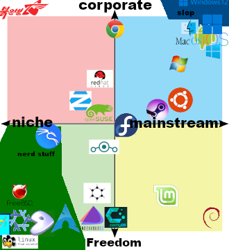 This, it’s extremely popular in enterprise to the point where debian just isn’t an option. Something like wind river should be deep in the red square.