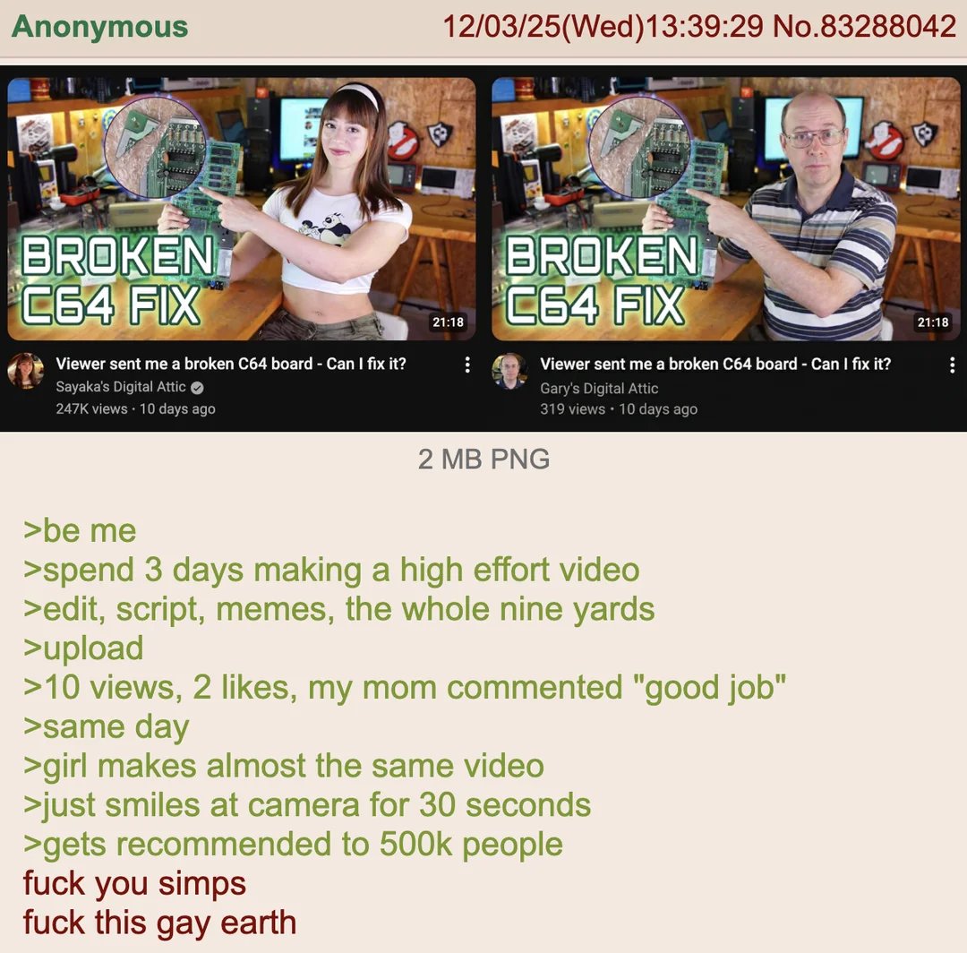 🍹Early to RISA 🧉@sh.itjust.worksM to Greentext@sh.itjust.works · 6 days agoAnon is a youtubersh.itjust.worksimagemessage-square79fedilinkarrow-up1335