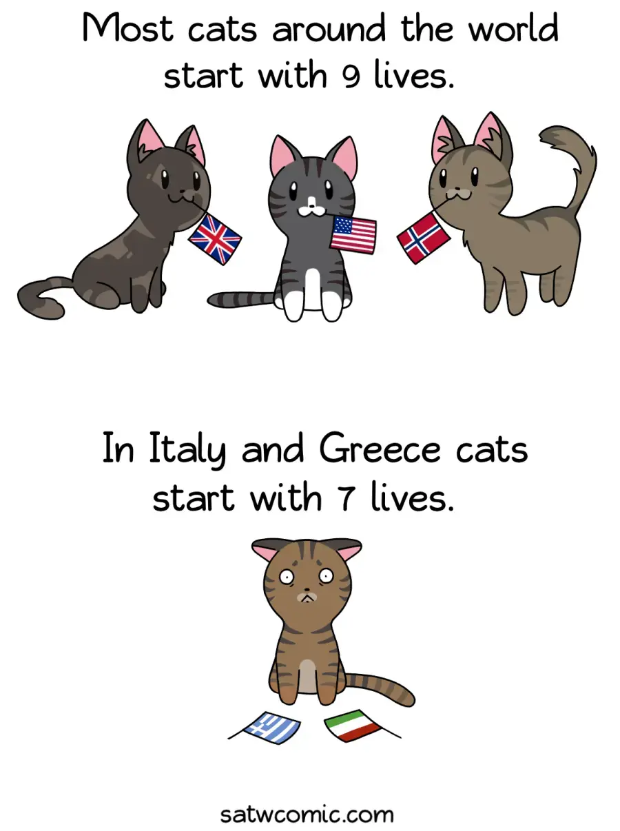 But a few years later I had learned of 9 lifes through cultural osmosis (eg American cartoons) which made the puzzle so much easier and I needed a moment to figure out why I used to have so much trouble with it.