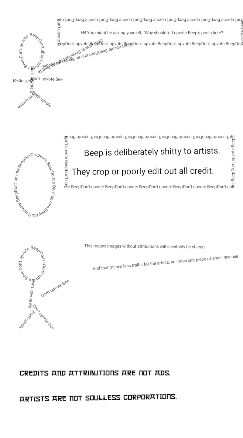 That’s an understatement. When they don’t crop out the artist, they literally recreate a worse version of it using AI and post that. Yeah…