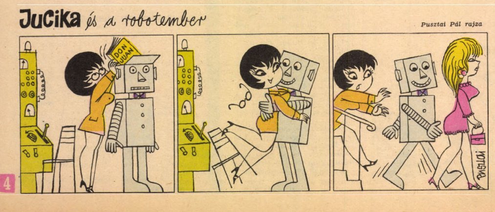 I’ve been seeing this comic making rounds on various social media recently and also like the style. It’s called Jucika and was a Hungarian comic from 1957-1970. I have a bunch saved in my “for Lemmy” folder on my phone now, so I’ll be posting more of them.