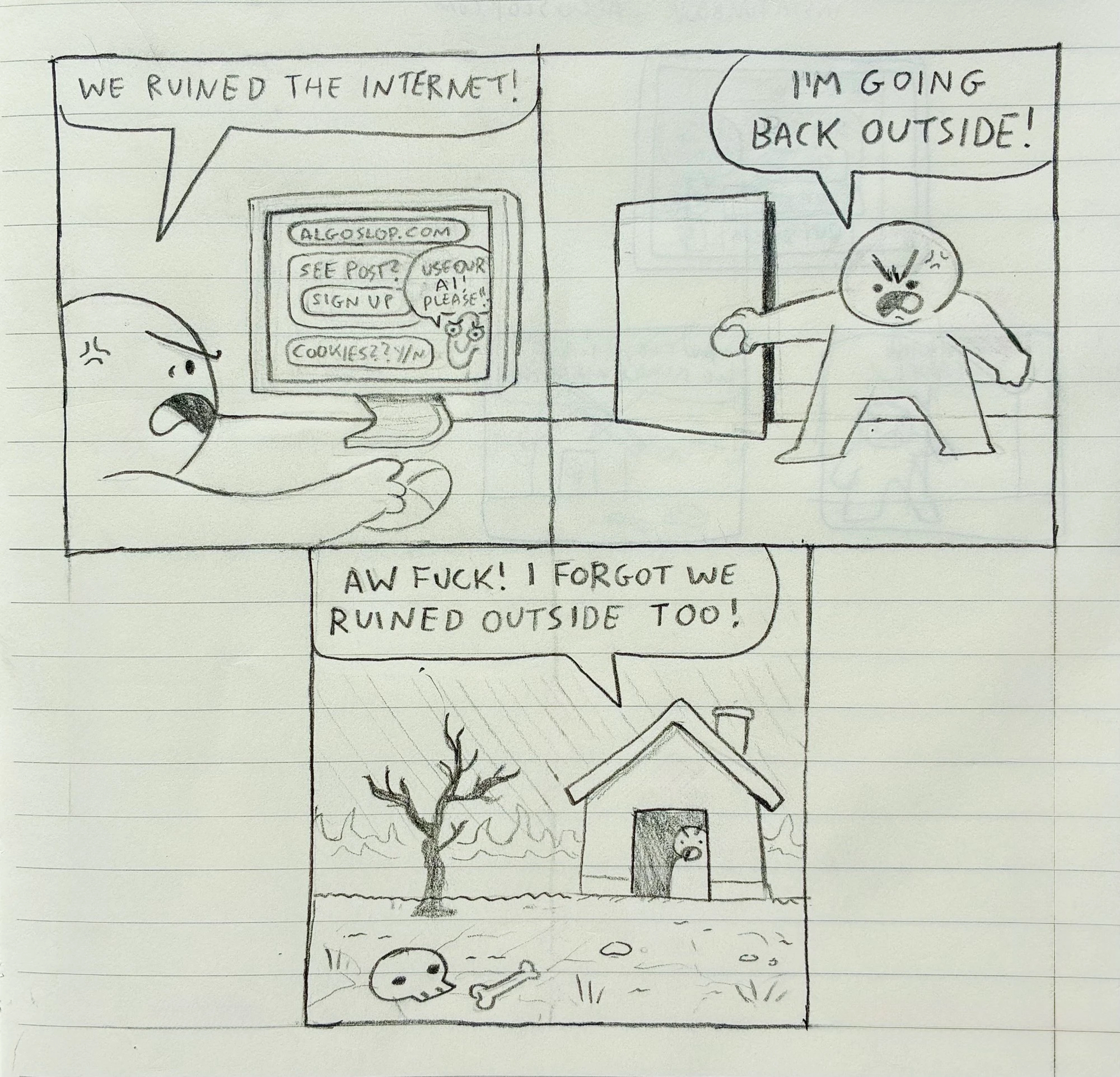 cannedtuna@lemmy.world to Comic Strips@lemmy.worldEnglish · 13 hours agoWe ruin everythinglemmy.worldimagemessage-square35fedilinkarrow-up11.01Kfile-text