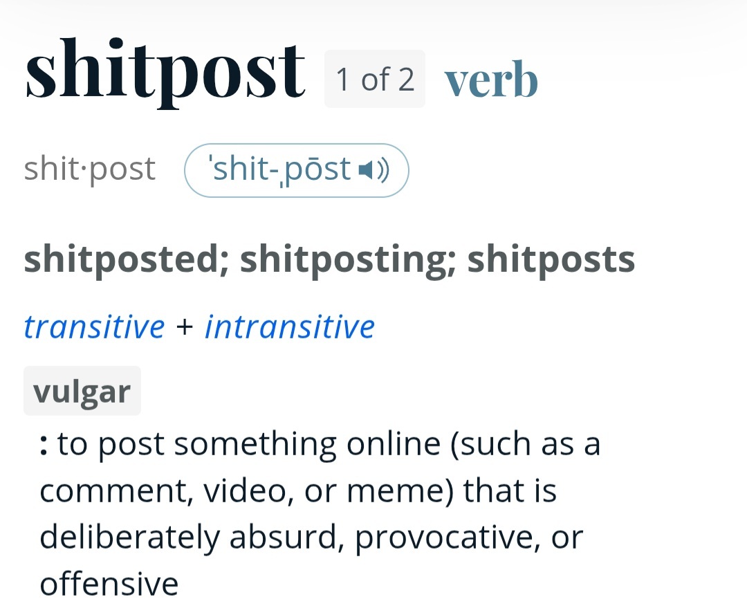 I think the spirit of shitposting is in opposition to the spirit of taxonomy. And it’s super ironic to argue over the definition.