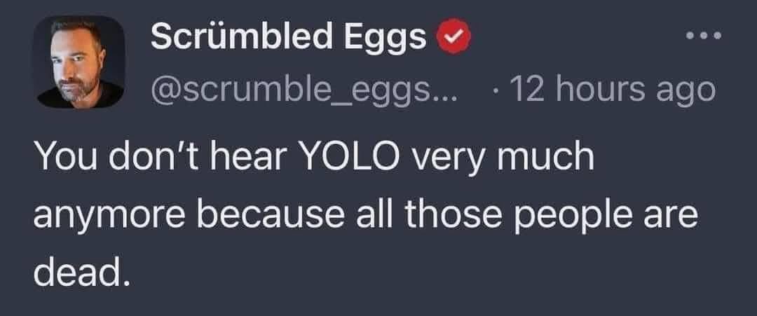 Last time I saw yolo used was by crypto bros/wallstreetbet types making bad financial decisions.