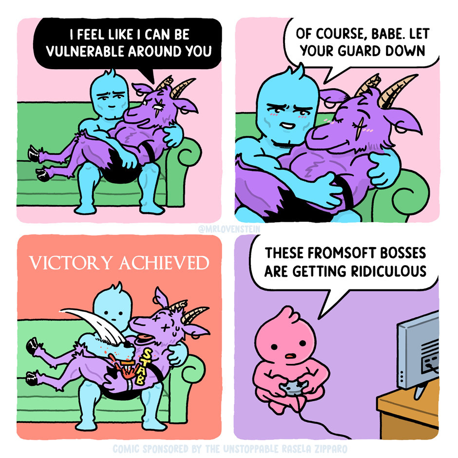 Reminiscent of the “marriage” quest line in DS3 where do this to the character with horus is hanging around with after the birds, before the non poisonous swamp.