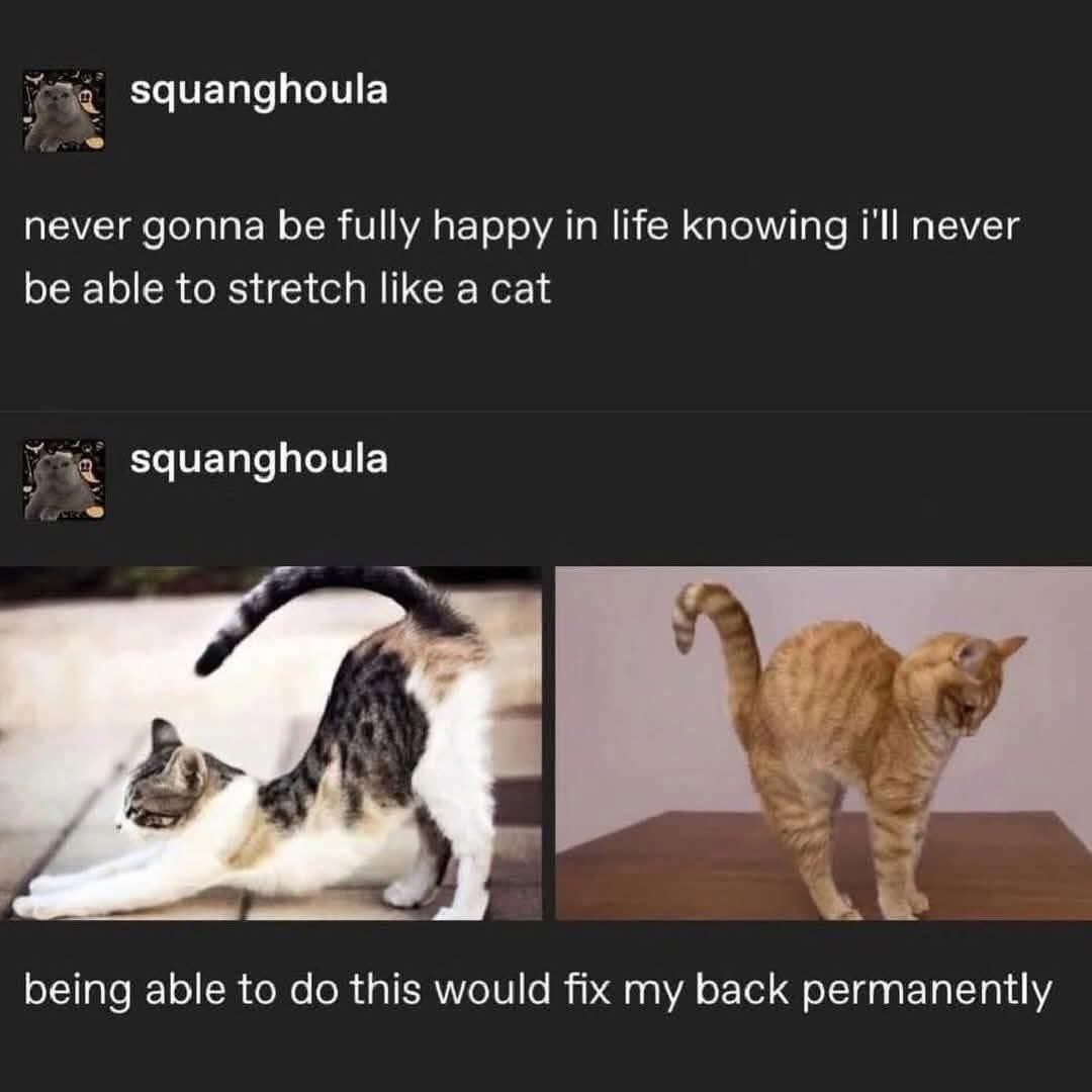 I have actually managed to unfuck my back at some point, by doing a motion like the cat on the right. 🥴