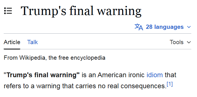 cm0002@lemmings.world to Political Memes@lemmy.ca · 21 hours agoTrump's final warninglemmy.mlimagemessage-square6fedilinkarrow-up1246
