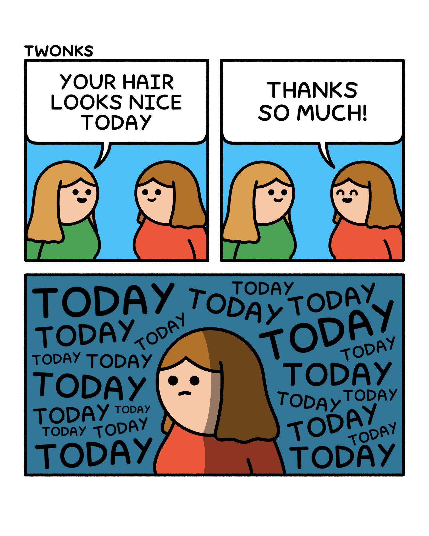 I have to be careful how I complement my wife because her anxiety disorder causes her to think like that.