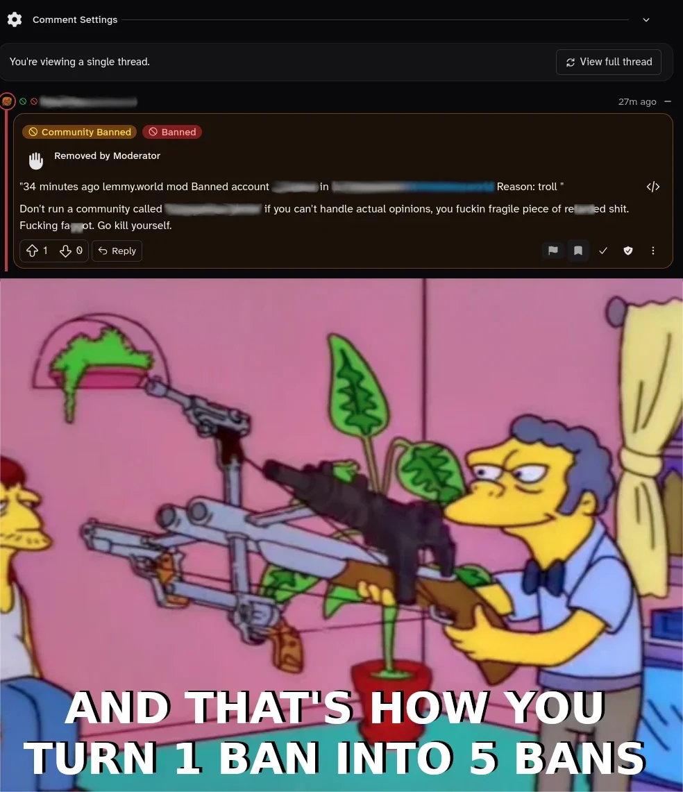 I wasn’t even the mod involved in this until they decided to spew abuse at me in a completely unrelated community that I do mod. Ugh. Why are people like this, and why are so many of them on this platform?