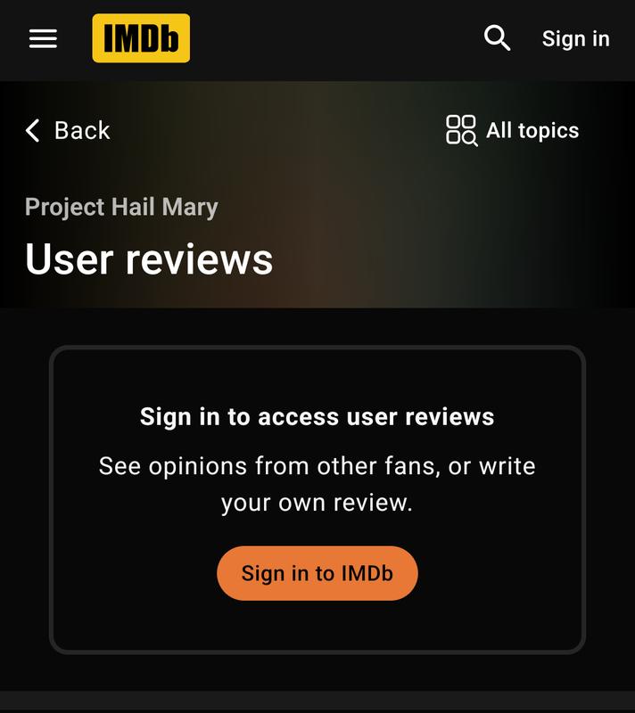 TheImpressiveX@piefed.socialM to movies@piefed.socialEnglish · 14 hours agoIMDb now requires an account to read user reviewsi.postimg.ccimagemessage-square57fedilinkarrow-up1166