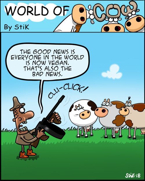 Exactly, everyone is going to go vegan simultaneously so we’ll have to genocide cows. That’s definitely how it’ll work.
