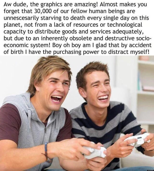 To me, the post feels more like my lived experience. No one watches the news. People barely have the mental capacity to understand th conflict, much less see any tangible ties to actionable progress. It’s just the next consumerist thing with the occasional programmed bullshit “rip charliekirk” and “I dont think trans people should play sports”