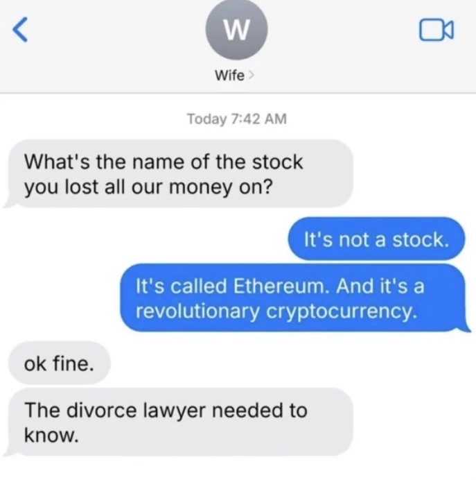 arrow-up11imageWife changing moneylemmy.mltracyspcy@lemmy.mlM to Bωockchain@lemmy.ml · 21 hours agomessage-square0fedilinkfile-textcross-posted to: lemmyshitpost@lemmy.world