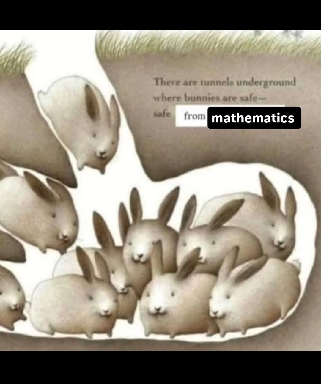 Sadly, in their aversion to math, they lost all ability to path find (graph theory) and navigate (geometry). Thus the bunnies remained trapped down there, forever lost in darkness…