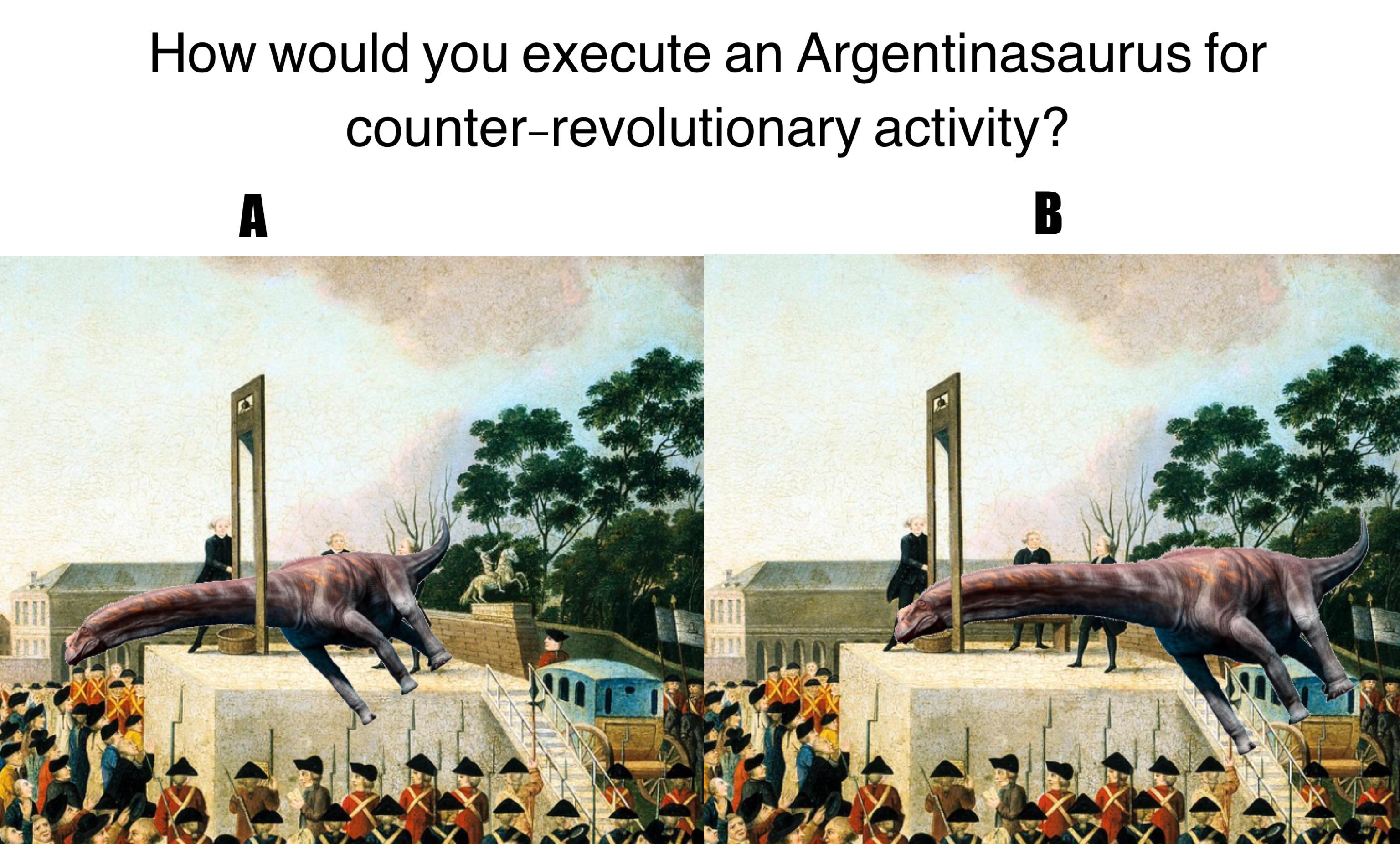 minus-squarestupidcasey@lemmy.worldlinkfedilinkarrow-up3·4 hours agoArgentinosaurus stands with the people.