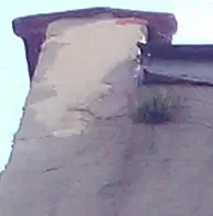 The linked pic shows the exterior where a plant is growing out of the wall. The wall is cracked and bulging. The pic is not good at showing 3 dimensions but the bulge is clear with a naken eye view. On the other side of the wall I could see the wood was a bit swelled and the plaster around it was very moldy. So I stripped off a lot of the moldy plaster. It was very soft from dampness. Fortunately, the mortar is still hard. Just the plaster was soft. Now looks like this: