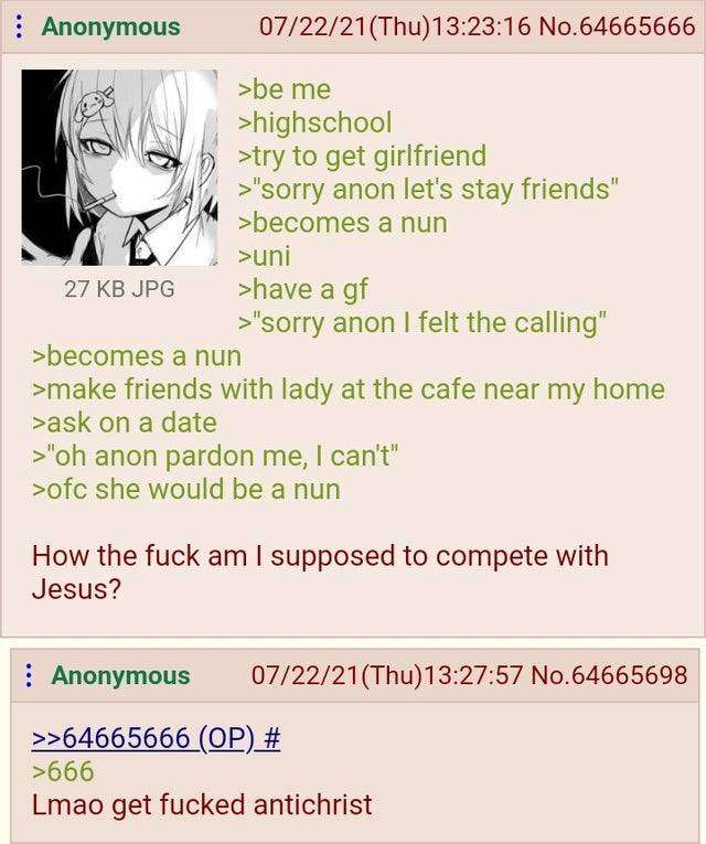 ComradeSharkfucker@lemmy.ml to Greentext@sh.itjust.worksEnglish · 5 hours agooutcompeted by Godlemmy.mlimagemessage-square1fedilinkarrow-up170