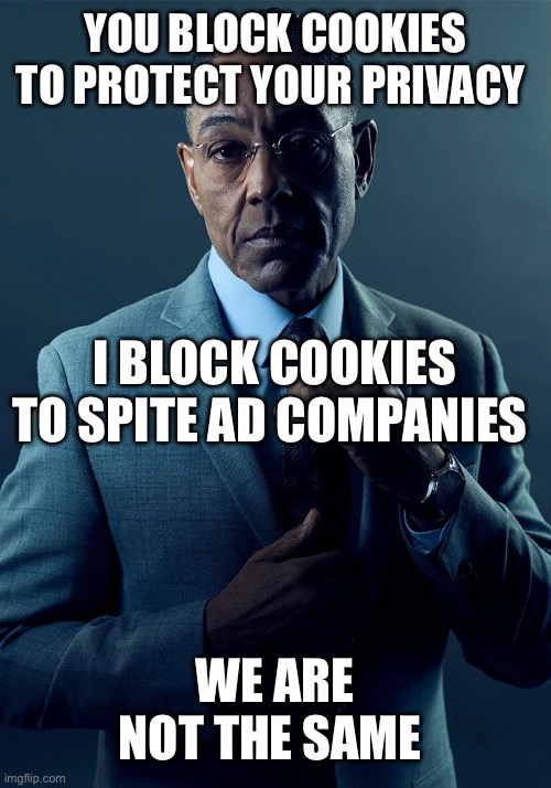 Thanks chicken man. Let’s all block cookies and ads to spite ad companies.