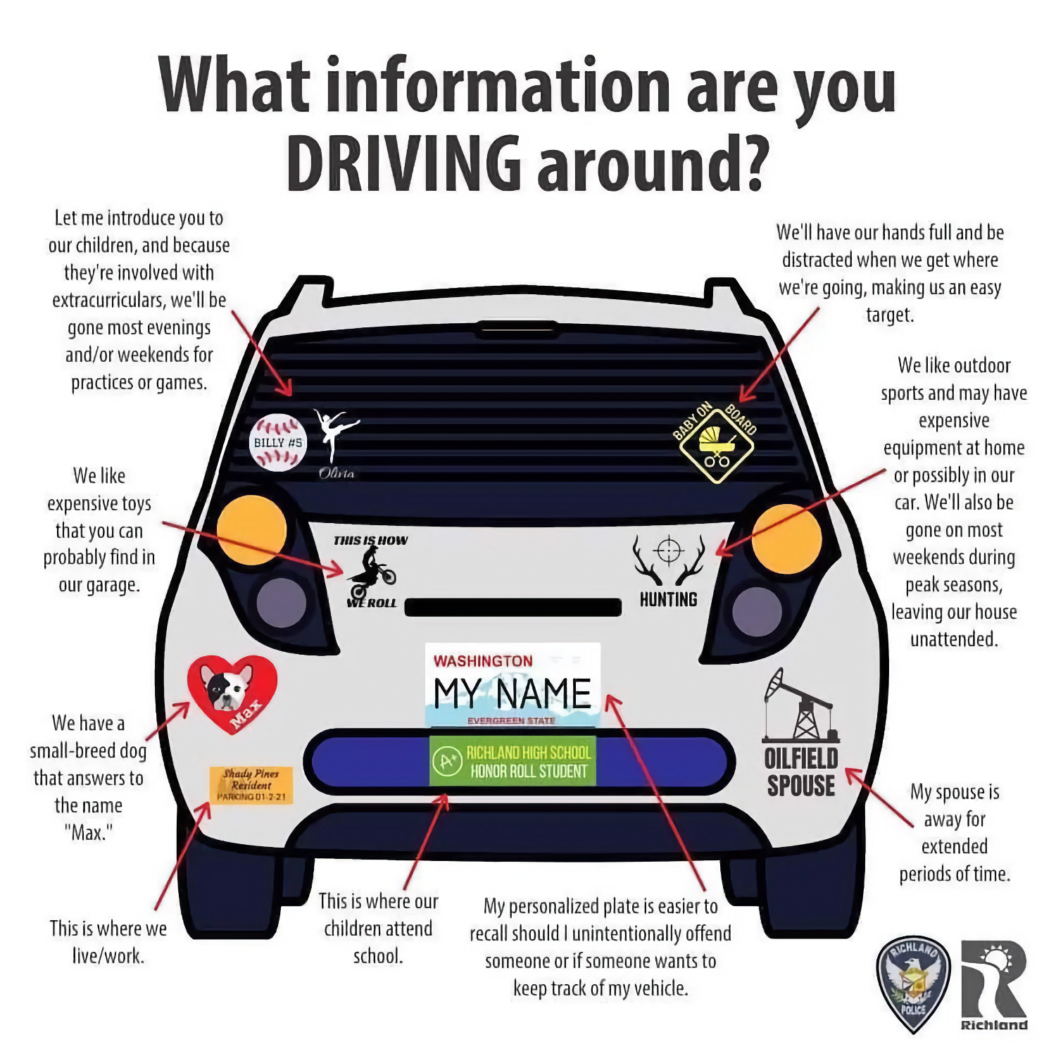 I mean, my spouse has received death threats because of her line of work. We have 2 small children and we make sure they have no online presence at all (no pictures, comments, tags, etc), and we intentionally make sure to not have anything identifiable like this on our car. Our other family members have been included in threats before. If someone, for any reason, is targeting you, youre actually giving them a ton of information. Its easier to just not put it on your car and not risk it