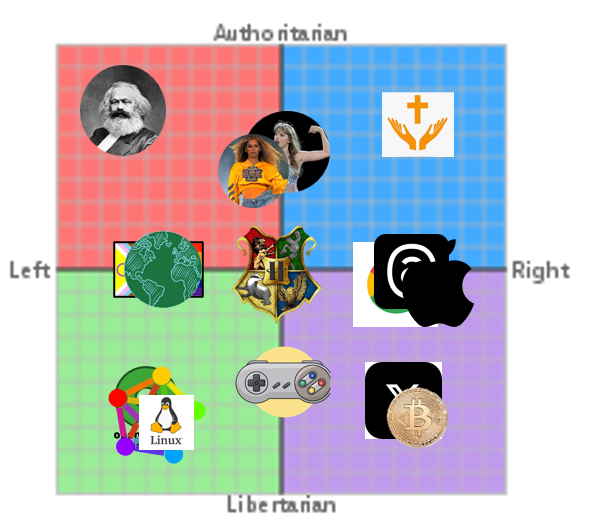 But effectively, Marxism is about a violent uprising of the worker class and then this working class rules, right? So that’s kind of authoritarian. Stalin is of course in the most left, most top corner.
