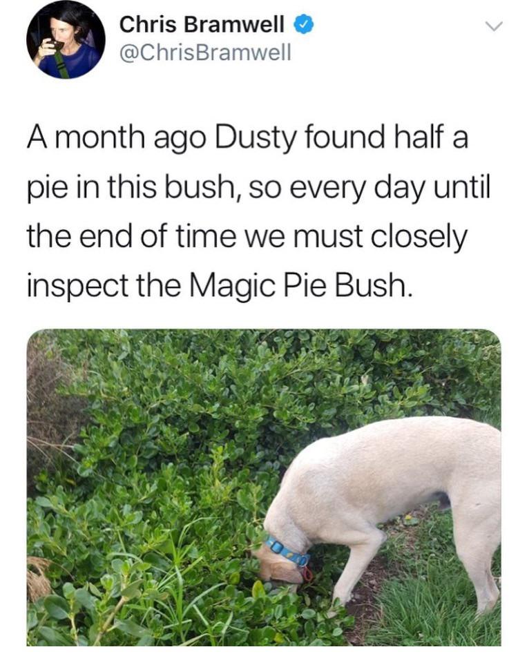 The owner should put treats in that bush for Dusty to find.