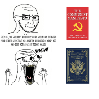 Some would have nasty things to say about the Manifesto, sure, but it’s not something they’d bring up, and not because it’s old. And trust me… The Bible or Adam Smith is the constitution as far as some are concerned. There is either no issue with old documents, or cynicism/worry over the ones we have.