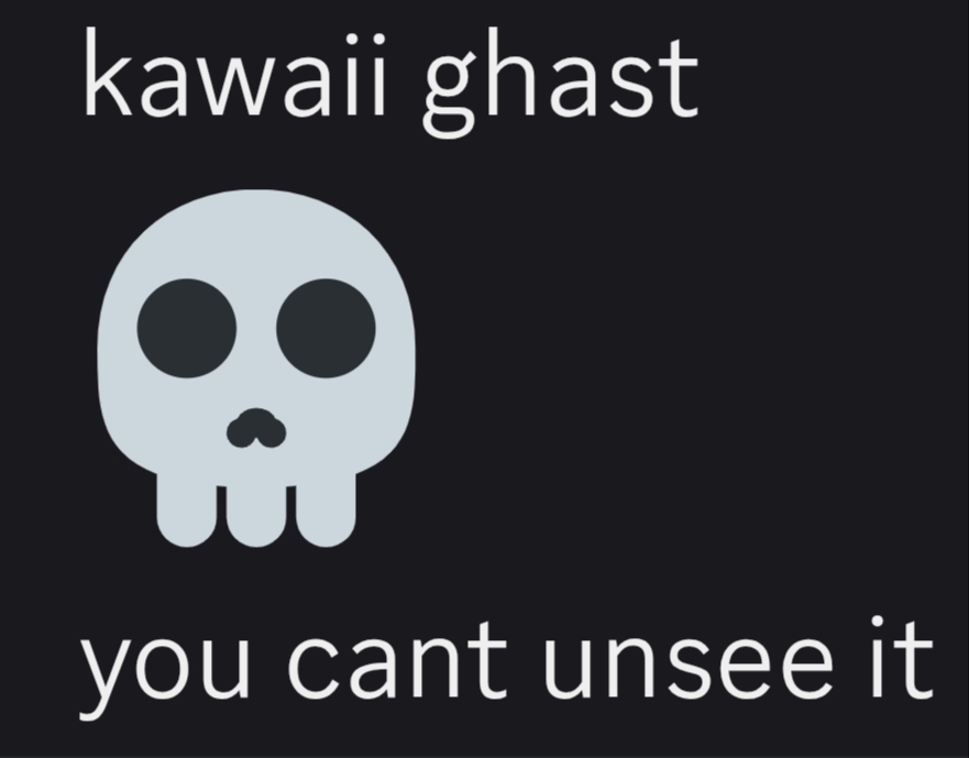 the nose hole (or whatever its called) if you see it as a mouth and the teeth as tentacles it looks like a minecraft ghast but cute anime/manga style